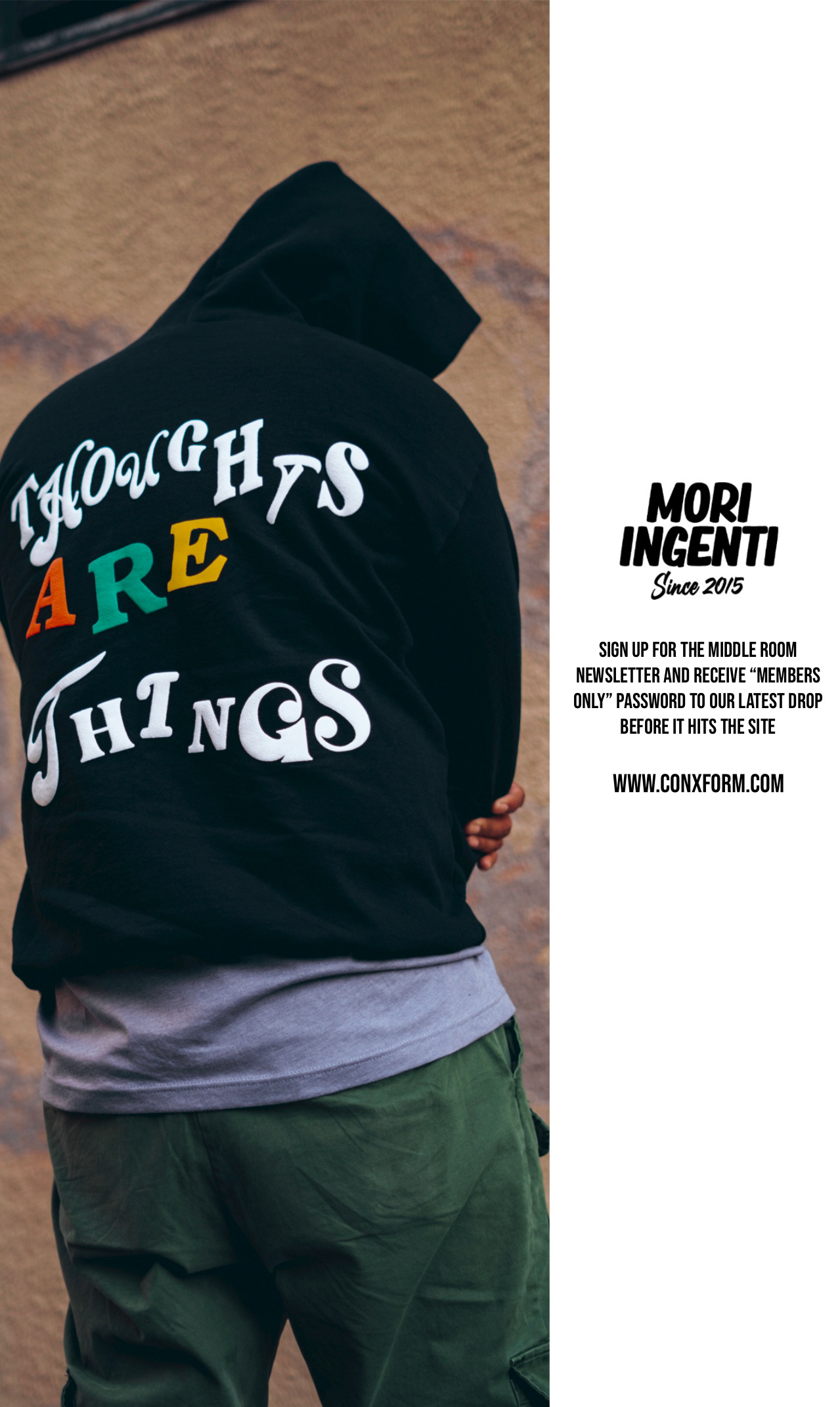 Logo Design: I designed the signature Conxform logo, a bold handwritten wordmark featuring the unique “f/x” character at its core. The “x” in the center represents transformation and the brand’s core principle of not conforming, serving as a visual metaphor for breaking boundaries and challenging norms.